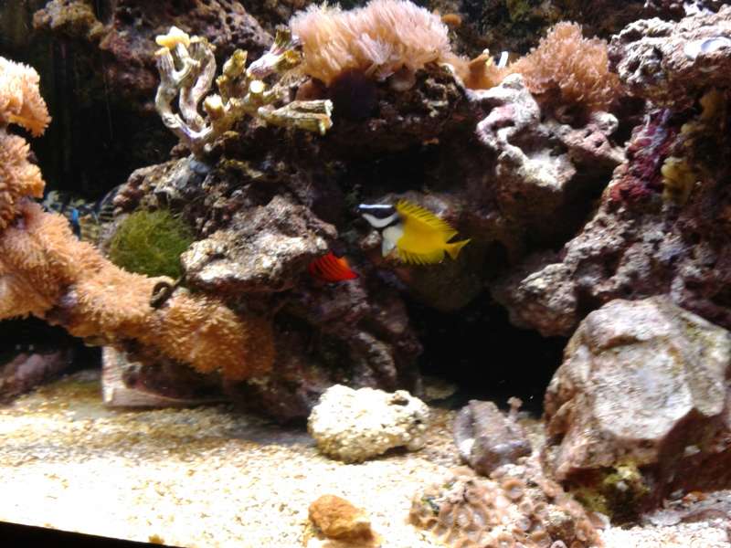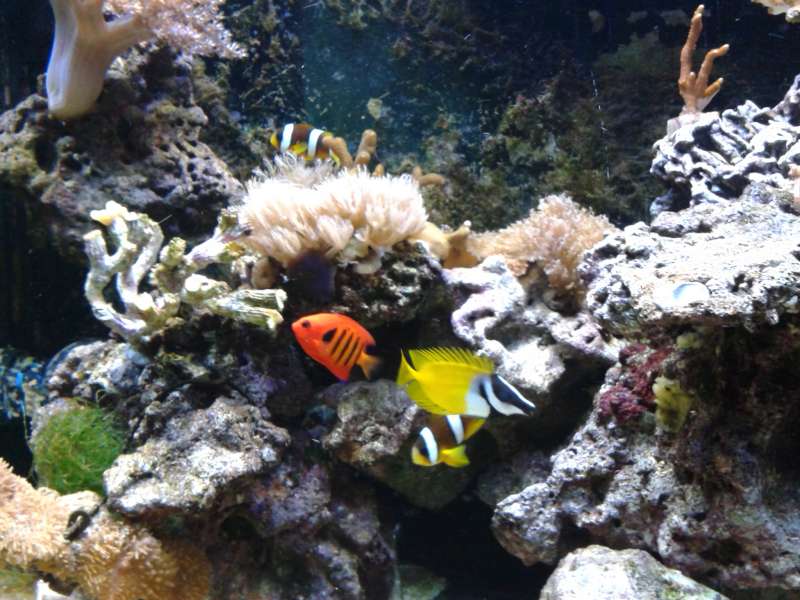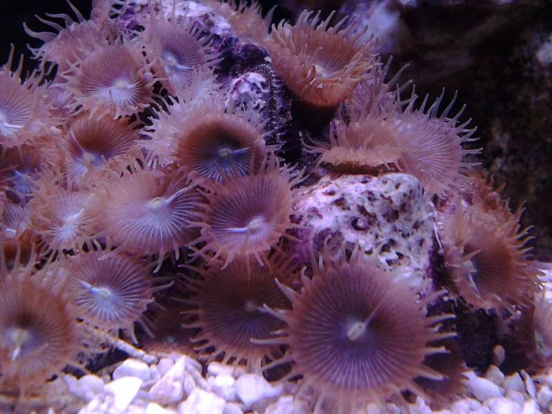 Der var en MASSE levende i stenene = masser af snegle og børsteorme, herud over en del Kenya træer og elefantøre skive anemoner. Alle har det godt efter flytningen. Der dukkede sgu også en rimelig stor eremit krabbe op ( blå benet eremit?). Desværre fandt jeg en aften jeg sad og lyste med en lommelygte 2 stk. glasroser. Nu har de fået saltsyre og har ikke set dem siden. Har efterfølgende fået at vide af nogle at de, når man gør sådan, skyder en masse sporre ud i vandet, så der bare kommer mange flere????? Det håber jeg fandme ikke? har ikke set nogle endnu... Jeres erfaringer?