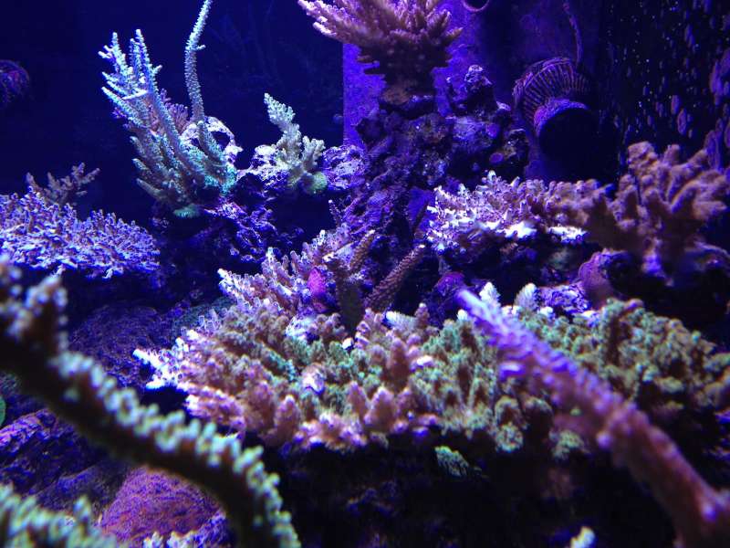 Blev for alvor "hooked" igen, da jeg på nettet så nogle fantastiske levende koralrevsakvarier, og samtidig i Storcenter Nord i Århus kunne se et i virkeligheden (det første de havde opstillet) med store Acropora staghorn og andet guf. Blev dog noget bleg, da jeg fik lov til at kikke i "maskinrummet", og kunne se, at man nok nærmest skulle have en Ingeniøruddannelse for at fatte alt det isenkram, der var proppet sammen dernede.