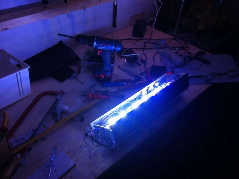 Jeg har skam kigget meget i din tråd men jeg ved ikke helt om jeg synes at pengene er til to nye lamper. Hvilke modeller bruger du? Jeg vil så vidt muligt gerne beholde det originale låg. Jeg har overvejet om man kan bygge en plexi kasse hvori mit DIY LED så skal være. Det burde ikke være umuligt. Er lige gået igang med låget til sumpen. Når det er færdigt vil jeg få samlet ledningerne i underskabet så der kan være plads til en dunk med ferskvand. Derved kan jeg få gang i min osmolator.