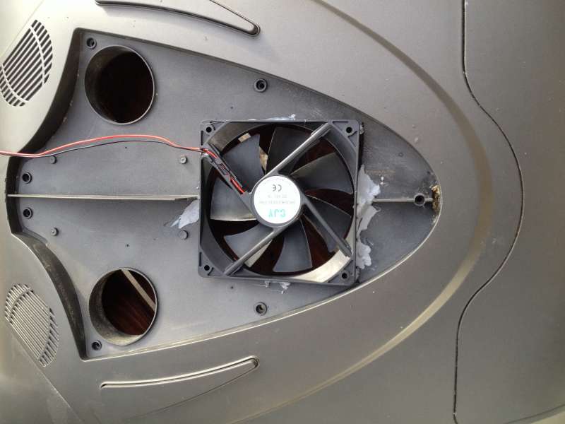 Ny 12 cm blæser monteret og dioderne er limet på heatzinken og forbundet