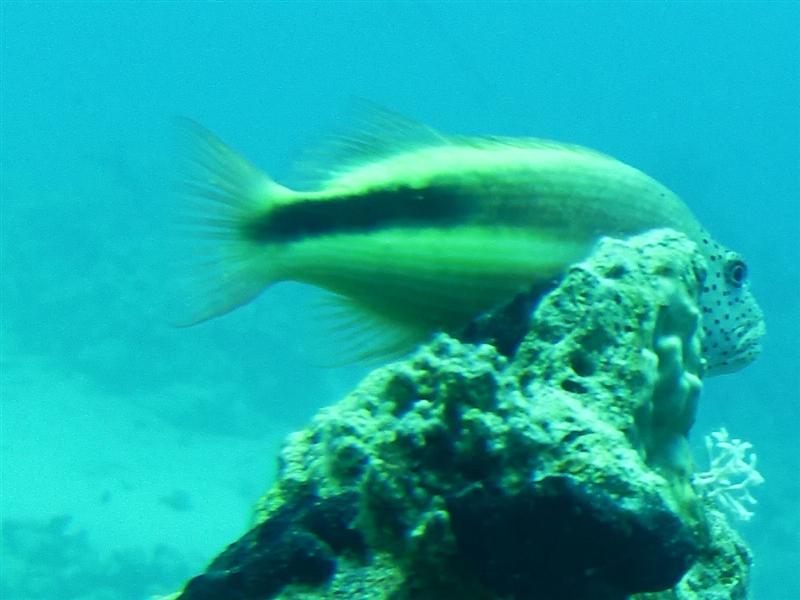 Offshore så vi både delfiner, tun en masse, en gigantisk Napoleon gylte, en ørnerokke på min. 2 meter og en skildpadde.