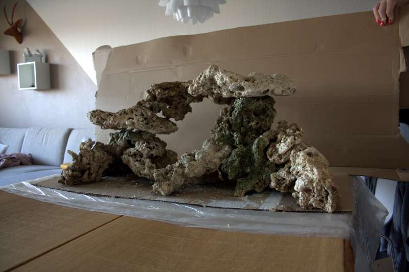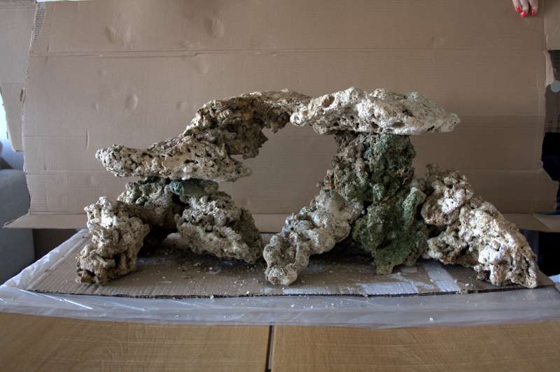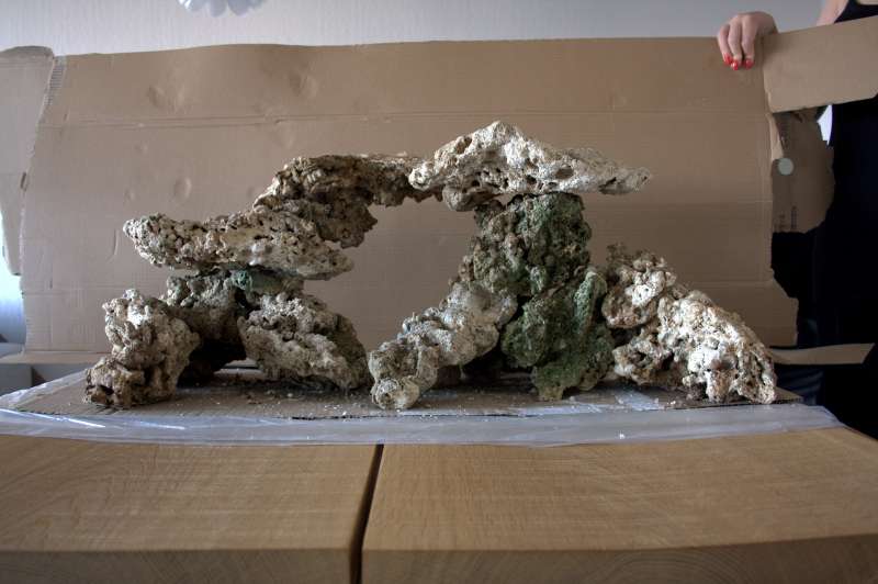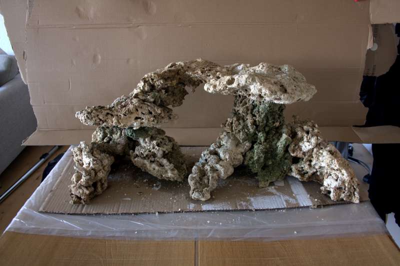 Opbygningen måler 82x35x36 LxHxB og skal som sagt være i et RSM250. Jeg havde tænkt mig at placere SPS på toppen af stenopsætningen og zoas og andet sjovt længere nede på "fødderne"
