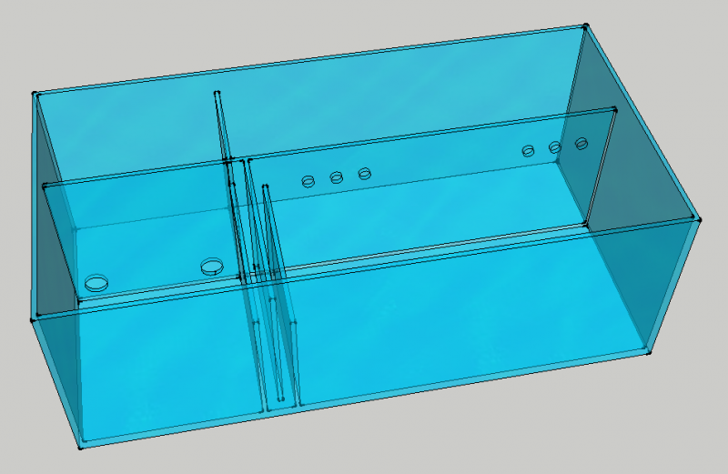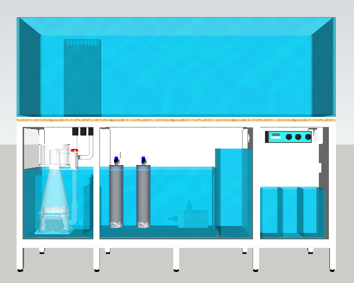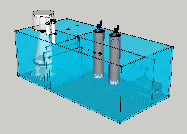 Har prøvet at samle så meget info som man kan uden at blive alt for rundforvirret, og med hjælp fra google sketchup har jeg tegnet i utrolig mange timer for at komme hen til et resultat jeg er godt tilfreds med. Har prøvet at sætte så meget fokus på anvendelighed som muligt, men på samme tid skal pladsen udnyttes optimalt, for at få så meget vand volumen som muligt. Syntes jeg er kommet frem til et rimelig godt resultat hvor de fleste ting skulle være til at komme til og grundelementerne er så optimale som muligt. Så må ting som udstyret være af en lidt billigere kvalitet som kan skiftes ud senere hen.