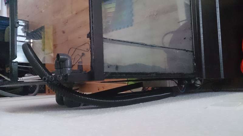 Så begynder vandet at ligne sig selv igen. På siden af akvariet hvor der er sat nyt glas i kommer der igen kanter på for at dække silikonen