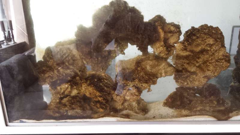 Stenene og sandet er fuldstædig fyldt med brune/sorte alger.. sådan har det stået i 2 uger nu og der sker ikke noget syntes jeg..