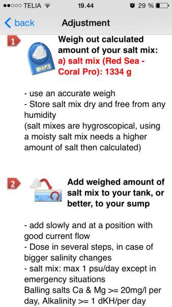 Jeg har lavet et exel ark hvor du kan taste det ind i og hvor mange gram. Ellers app'en aquacalulator kan også men det kræver vist at det salt mærke du bruger ligger i deres database
