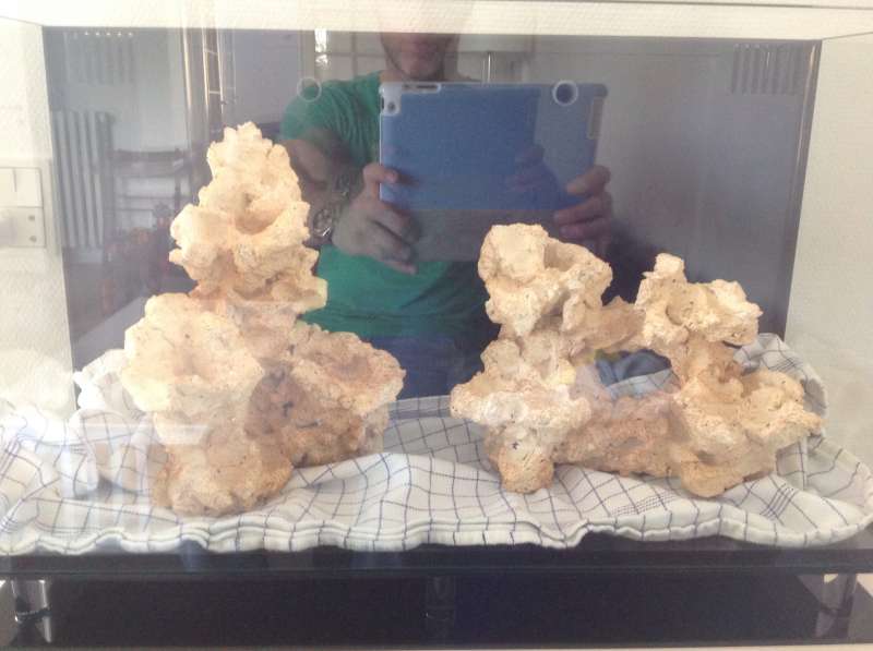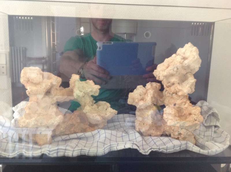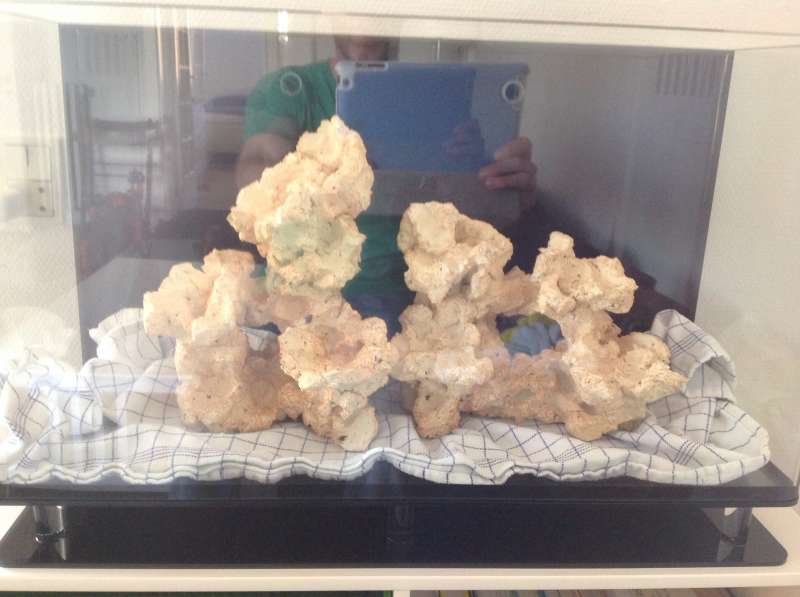 Så mit råd vil være, op med det hele. Sæt først dine sten direkte på bunden, strø dernæst et helt tyndt lag knust koralgrus ud mellem de store sten. Det vil sikkert spare dig en del ærgelser