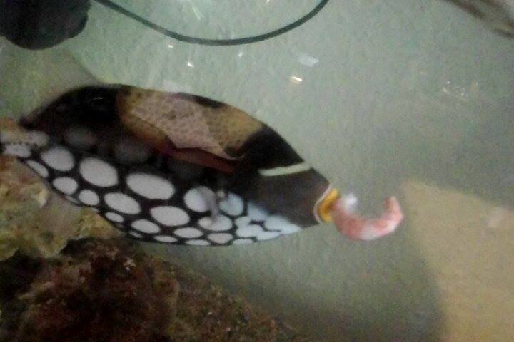 Her får han nr. 2 reje, som han nuppede fra pincetten og svømmede væk med ;)