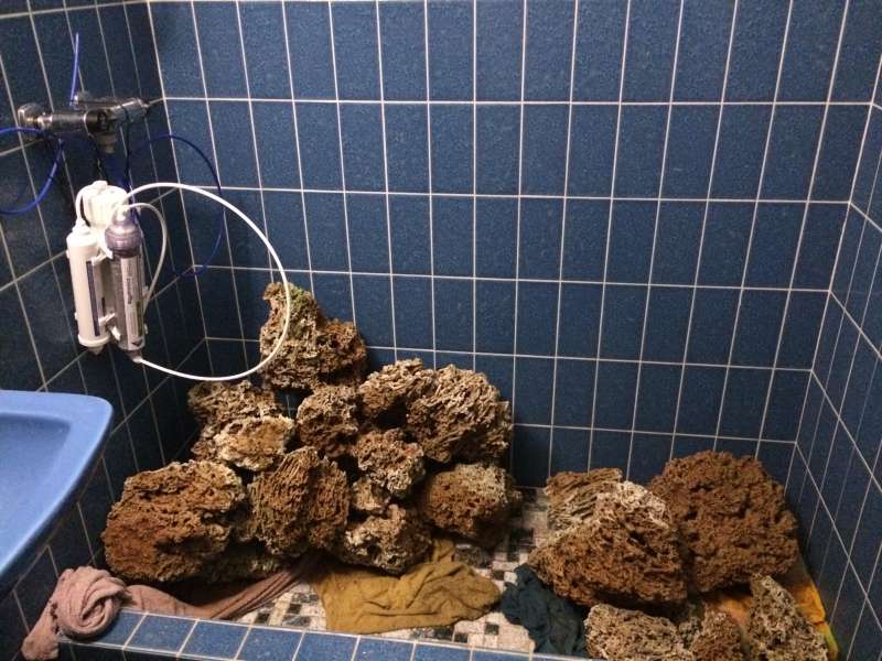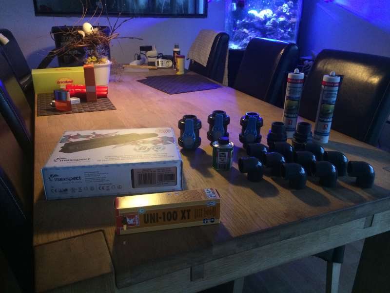 Akvarie bordet er bygget af en kammerat og så er det blevet galvaniseret, gulvet er skæret op så bordet kan stå på betonen, planen er det skal dækkes til igen. Af teknik kommer der en Upflow Alge Scrubber anordning i sumpen med DSB, har reserveret en MaxSpect Gyro pumpe til når de kommer til landet, har opgraderet min LED lampe med nye linser, og en masse andet.