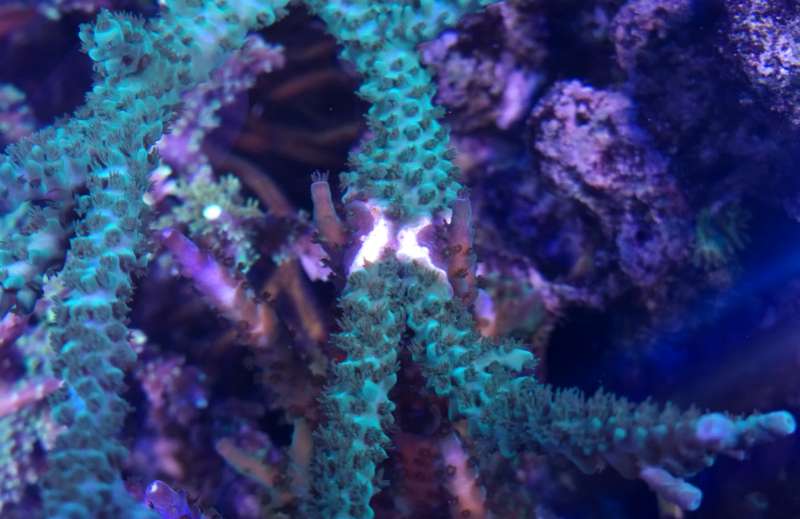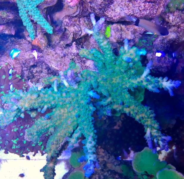 Blå grøn acro i dag Blå grøn acro for et halv års tid siden..... US monti plade Superman under blå lys lilla acro med grønne polypper