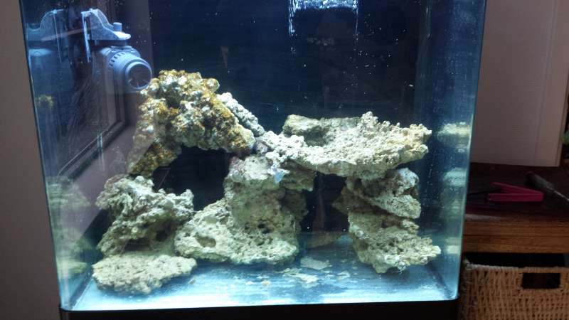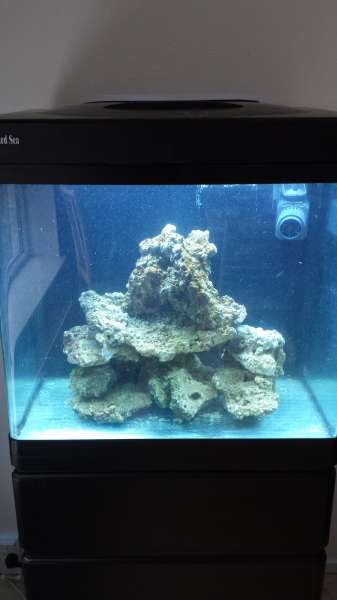 Jeg har også et RSM130, har stenene helt op af bagruden, men har så et powerhead til at pumpe vand langs med bagruden. Jeg ville ikke spilde så meget plads i mit akvarium.