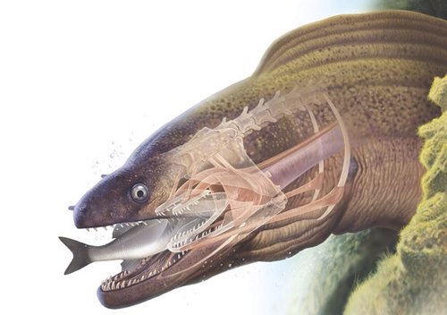 Fant lige ud af at de har en ekstra mund inde i halsen de skyder frem til og hive byttet ned i maven