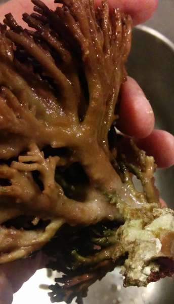 Det er planen at korallen får en tur mere i giften, om en uges tid. AEFW æg, tager ca en uge til 14 dage om at klække. æg sakl fjernes manuelt, så alle de områder med æg, blev klippet af. Korallerne blev efter turen i giften, først placeret i en spand med rent vand, i 10 minuter, og der efter i anden spand med rent vand i 10 min, inden de kom tilbage til akvariet... husk hansker, og cirklulere vandet lidt ind imellem, brug evt en pipette til at blæse hen over korallen, det siges at aefw kan "slime sig til" når de er fare på færde, hvilke er derfor så mange bekæmpelse midler imod dem er ineffektive, med at blæse hen over korallen får man blæst lidt af det slim af, og det gør man rammer dem bedre.. (siges der)... Jeg fik ikke lige taget billeder af de døde aefw til slut, da det skulle gå lidt hurtigt..