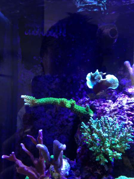 Det skal siges at da jeg startede akvarierne var jeg på SU :BA , så det var bare planen med lidt fisk og ingen koraller. Jeg fik prøvet krafter af med aftrækkere, muræner, kiruger osv. Jeg lærte rigtig meget.. Også at for mange fik og få hyppig fodre lige pludselig gav bagslag... Jeg røg ud i et kæmpe alge bloom.. Jeg solgte lidt fisk, og besluttede mig for at have lidt koraller i.. Det har så taget overhånd :K
