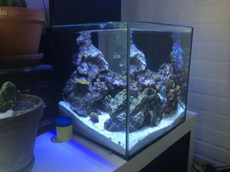 Ok alså det der er lavet er et aqua medic og et superFish begge på omkring de 40 liter og begge med meget bundlag dog ik DSB og de er rykket sammen i aqua medic og de fleste koraller er fjernet hvis der skulle komme en større indkørings fase.