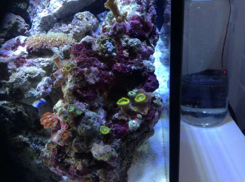 Sten står alt for tæt på til at rense ruden i venstre side så det må sneglen gøre men ja det er lidt øv når man ik kan rense ruder men det kan man ik rigtig på nogle af mine nu 7 rev, men lige i det her kan hele den sten som zoa'er sider på fjernes når der er lavet plads til den et andet sted så bliver hele den side åben igen jeg har lagt den til sidst og ingen ting eller sten rør den.