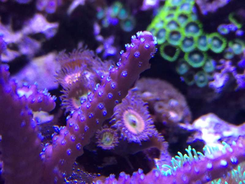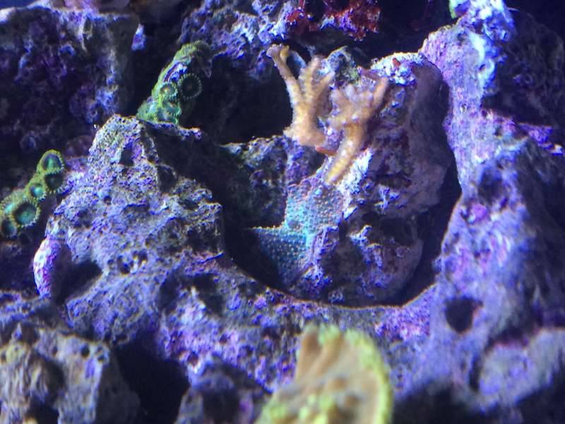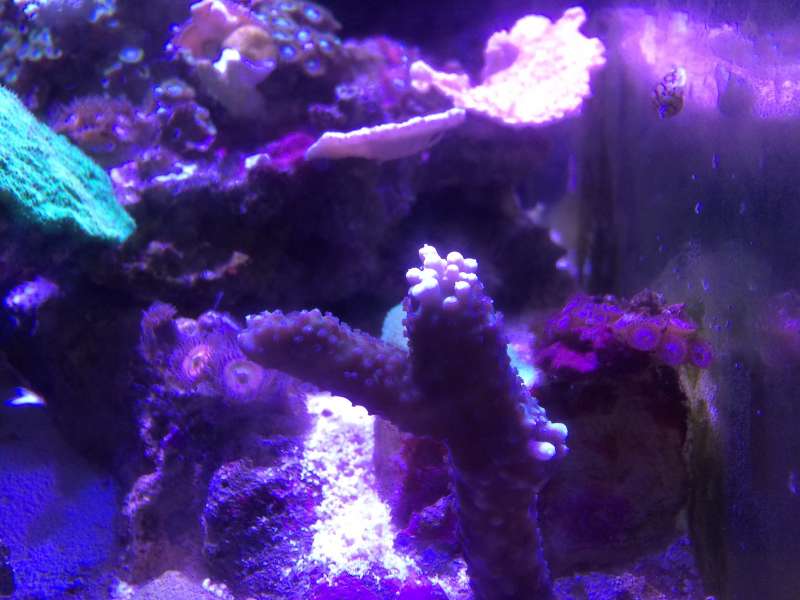 Endelig sker der noget nu har min acropora stået og blivet bredere og breder i meget lang tid uden at sætte skud eller vokse andet end i bredden men nu ser det ud til den sætter grene/skud og så kan det være man kan finde lidt Info og evt id på den.