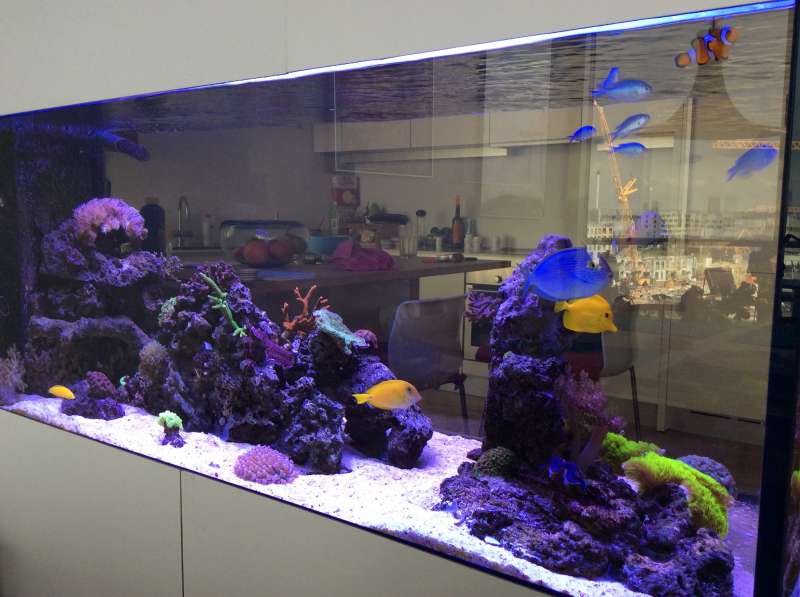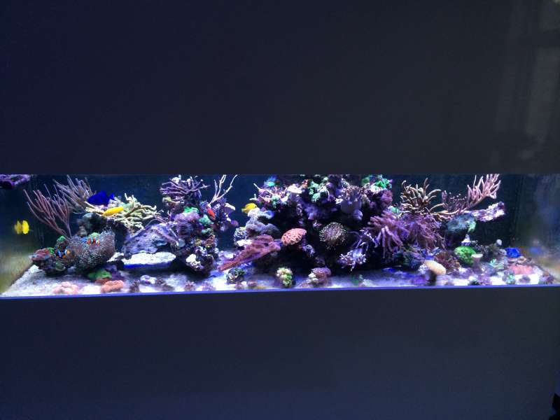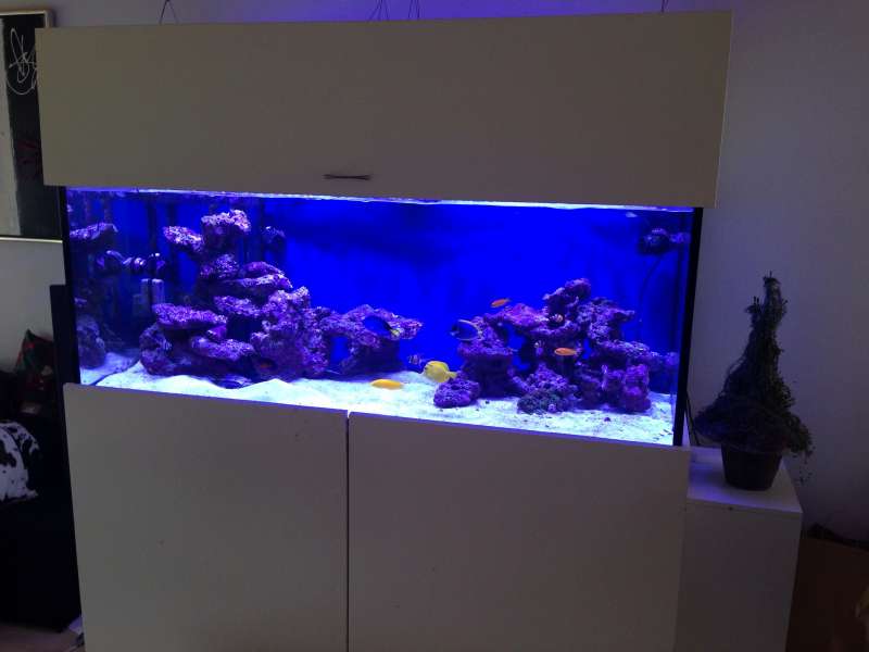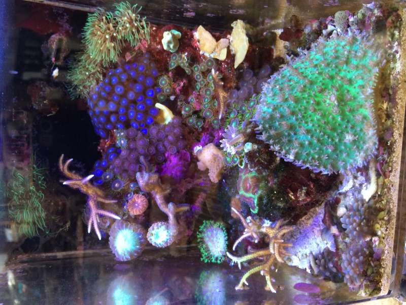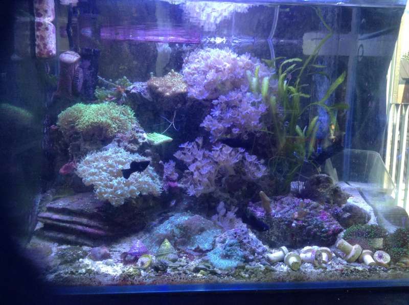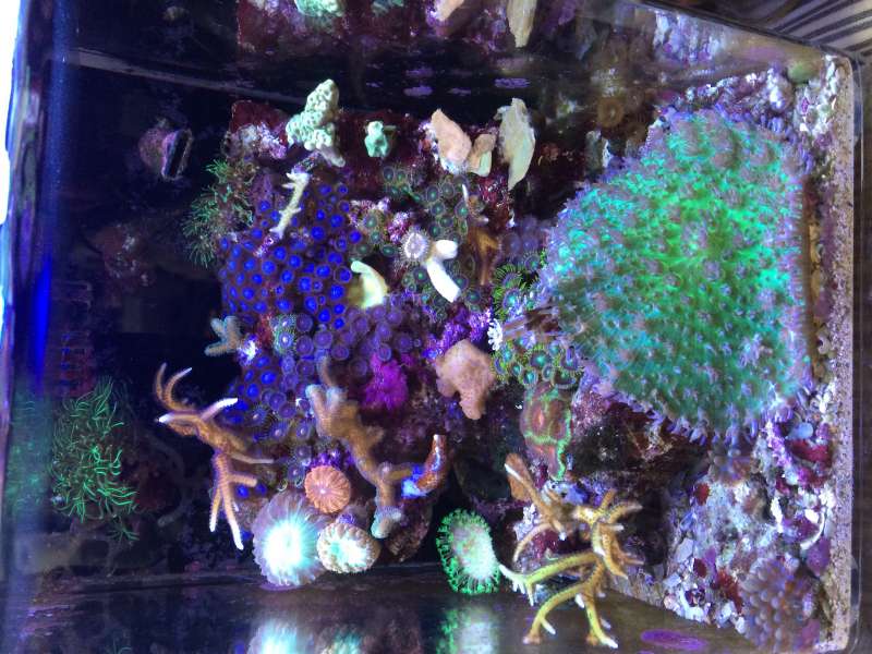 Det jeg er mest glad for pt er nok mit DIY lys, som er en combo af led og T5 ( pacific sun og ATI). JEG ELSKER shimmer i vandet og sol op/ned og JEG ELSKER det gode "brede" lys T5 rør giver.... Så dette er løsningen her i huset til jeg får råd til én eller to af de fine hybrid lamper.