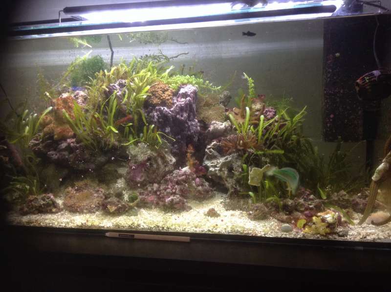 Satte mit Halloween søpindsvin i karantæne i refugium da det bliver ved med at flytte rundt på mine små Frags i DT. Resultat.... Den åd næsten alle mine makroalger