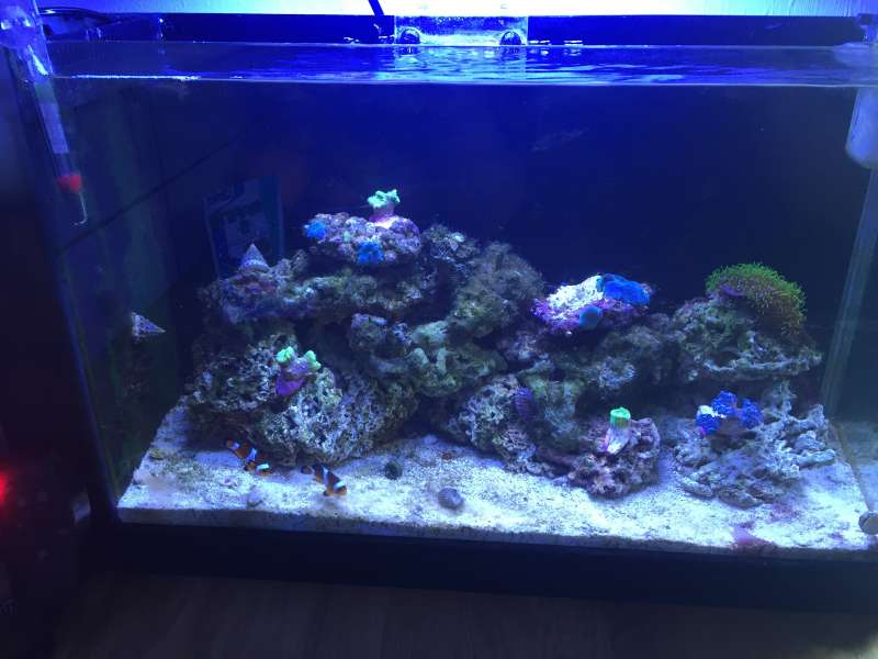 Den lille balje har kørt siden Maj og er nu begyndt at se bedre og bedre ud. Havde et gigantisk algeboom som det tog noget tid at slå ned og de LS jeg havde købt var der ikke så meget liv i som jeg havde håbet desværre