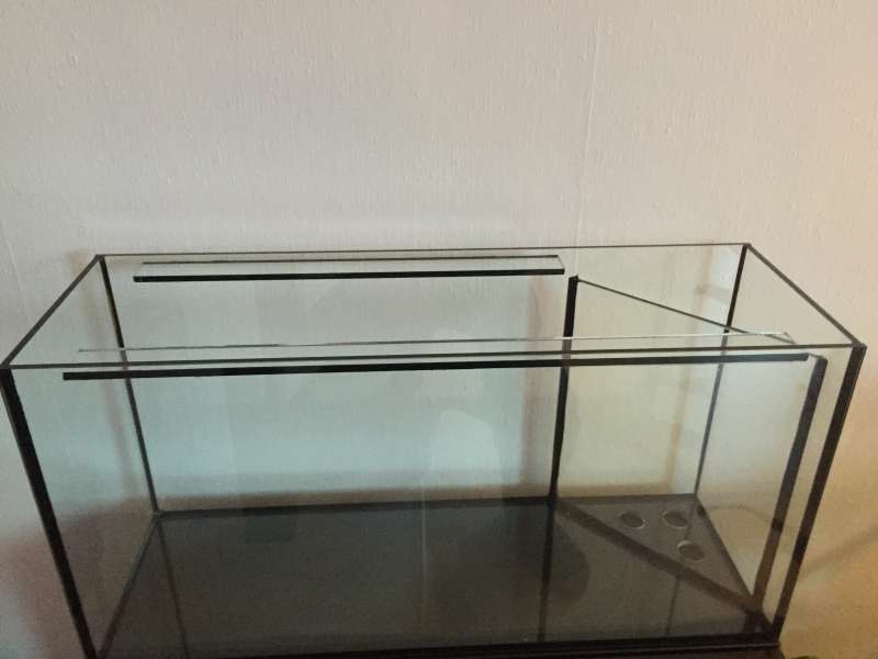 Akvariet bliver med overløb i højre side bag med 3 stk 20/25, hul Ø27mm i bunden.