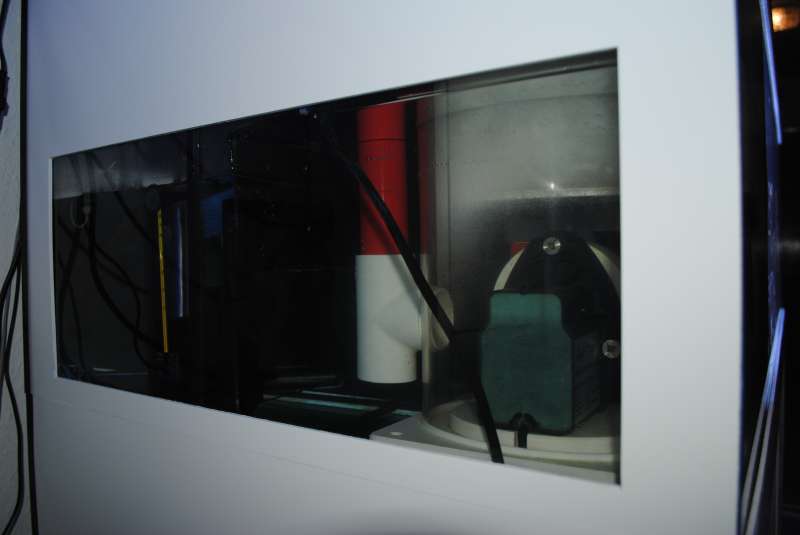 Min indvendige sump har målene L30 x D60 x H45, og er inddelt i et skummer- og returrum delt af en bobblefælde. Jeg har fået det lavet sådan, at jeg kan tage sidestykkerne, på begge sider, og en inspektionsplade, på bagsiden, af, som dækker af ind til sumpen, og på den måde kan jeg kigge ind i sumpen, når jeg roder i denne. Ideen til dette er, at hvis jeg vælger at bruge akvariet som rumdeler, så har jeg nem adgang til den indvendige sump fra begge sider