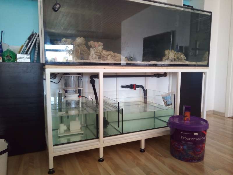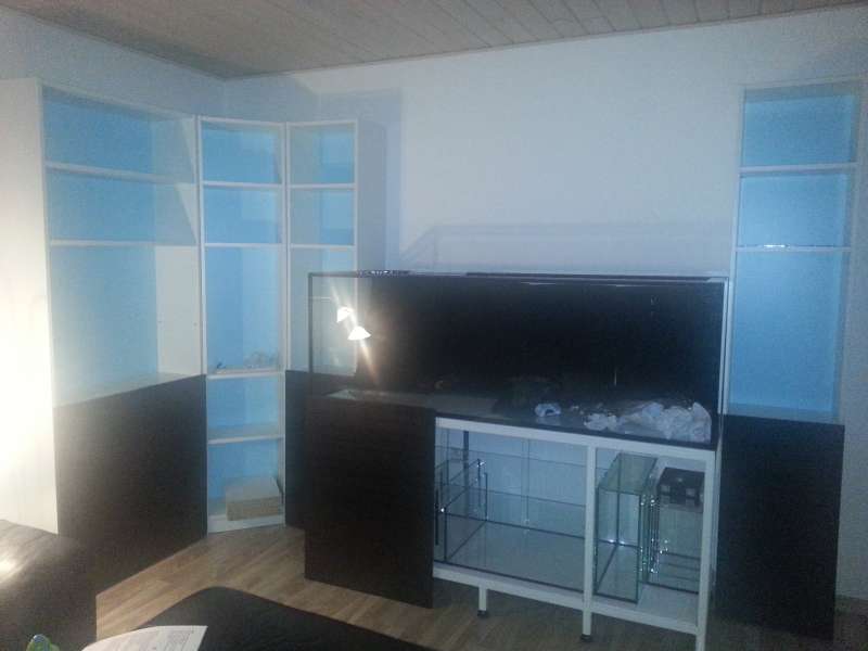 Og enten er mit jernbord lavet skævt ellers er der noget andet i vejen da akvarie i den sidste 4 del mod højre har luft under, ved ikke om det vil udligne sig når der kommer vægt på, hvad mener du?
