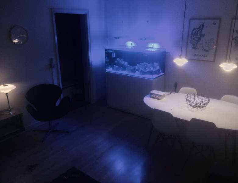 Har sparet og købt dele ind til akvariet over de sidste 3 år. For at kunne få det helt rigtige udstyr. Eneste jeg ønsker udskiftet er Bubble nac7 skummer til en BK160 mini. Alt i GHL udstyr (Profilux og Doser2 er dog ikke monteret da billeder blev taget) Akvariet siger dog næsten ikke en lyd i forvejen