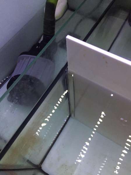 Man kunne også lave skillevæggen så ALT vandet løb gemmen refugium først, Forhøje væggen hvor der er fald mod bobbelfælde og lave riller eller huller i skillevæggen. På denne måde tvinges alt vand gennem refugium for derefter at løbe til skummerkammer og tilsidst mod returpumpen.
