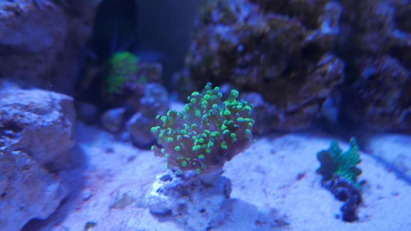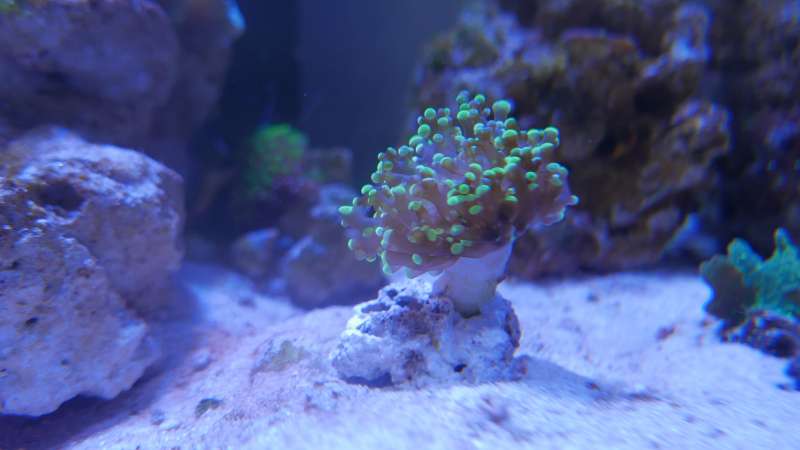Har lige købt en koral og vil gerne vide, hvis i tænker at der er blegning på den? Eller ser det bare at farvene er gode? Jeg er bare lidt bekymret over at armene kan ses igennem. Hvis det er blegning, hvad kan jeg gøre? Jeg havde den næsten øverst i akvariet og nu flyttede jeg den til bunden. Lys er AI Prime, 80% blå farver og 30% rød, grøn osv.