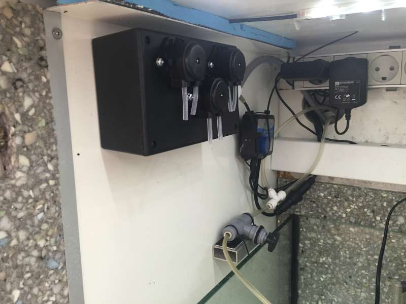 Cirkulationen i akvariet, varetages af en Jebao WP-25, en Tunze 6045 og en Tunze 6020. tiden må vise om det er heftigt nok. Returpumpen er en Tunze Silence 2400l/t.