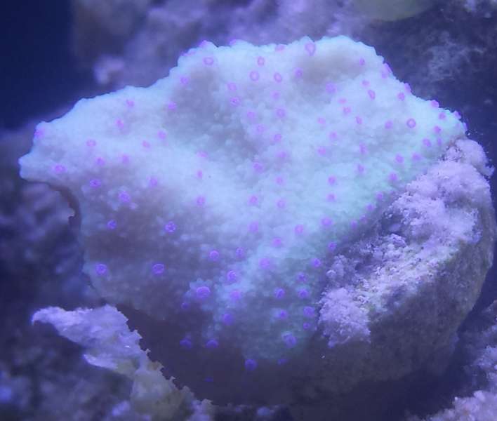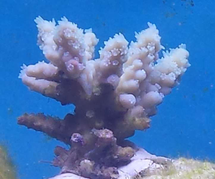 Af de nye har de fleste det glimragende, og er begyndt at vokse ud over limen og lidt over det hele, farverne går mod det bedre, selv om der er lang vej igen... Specielt mine ZOA er blevet rigtig lykkelige over at komme ned på 50 cm dybte og lidt i halvskygge, samme kan siges for min Chalice som har fået mere væv inde i koppen samt et håb om at den en dag får tilbage lidt farver.