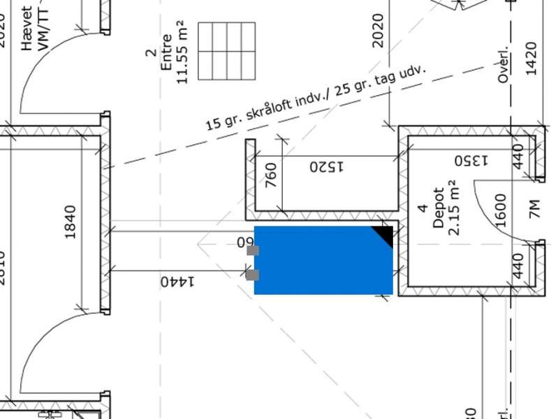 alternativt så kan jeg placere pumperne på siden ind imod vægen, det skaber dog et grimt hul.