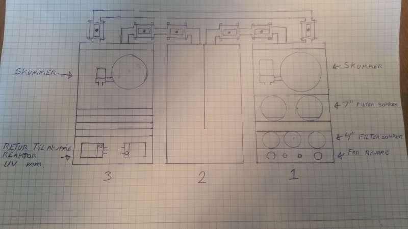 Grunden til at jeg tænker på bobbel fælde er at jeg ikke gider have et akvarie der ligner en ny åbnet danskvand. Men en enkelt bobbel fælde kunde vel også gøre det. Som minimum skal jeg have en enkelt plade som jeg har tegnet ved skummerene for at holde en stabil vandstand ved skummerne.