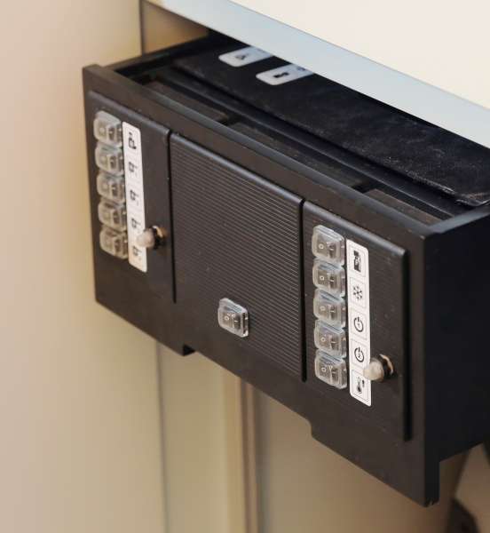 5) Alle ledninger er skjult, og der er en fin vandtæt skuffe til stik m.v.