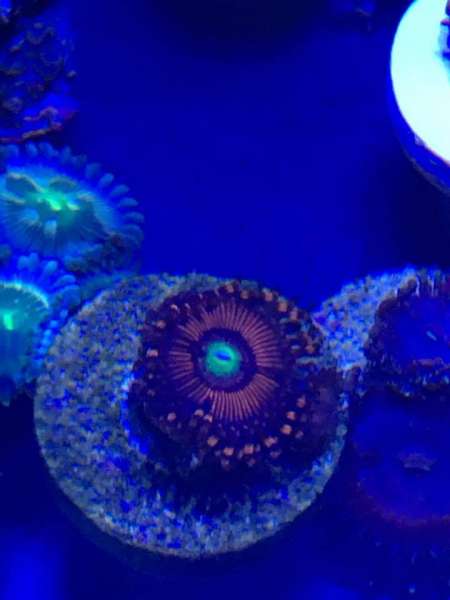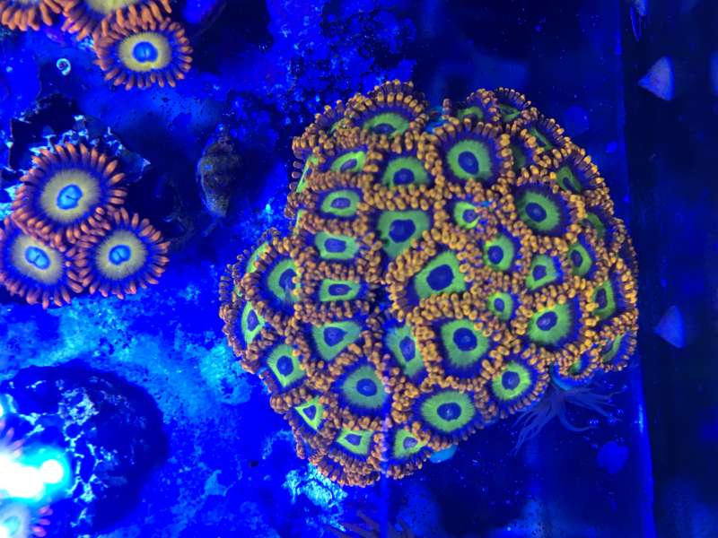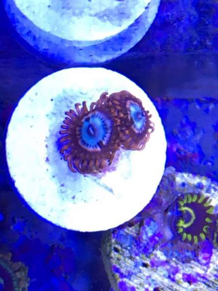 This Zoanthid forms clumped colonies of polyps with short tentacles. They are found in shallow areas where there is high water movement. Their colors are varied. The oral disc is generally a different color than the "skirt", and even a third color can form in the very center, almost like a pupil.