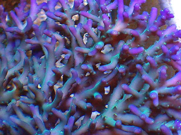Man mener at det er grønne flouriserende pigmenter fra en flouriserende grøn Pocillopora damicornis, (Der stod i samme tank) der fra stedet hvor de trængte ind i vævet, har bredt sig ud over korallen. Mulighederne er mange, men man må afslutningsvis konkludere – at de fleste er meget smukke koraller.