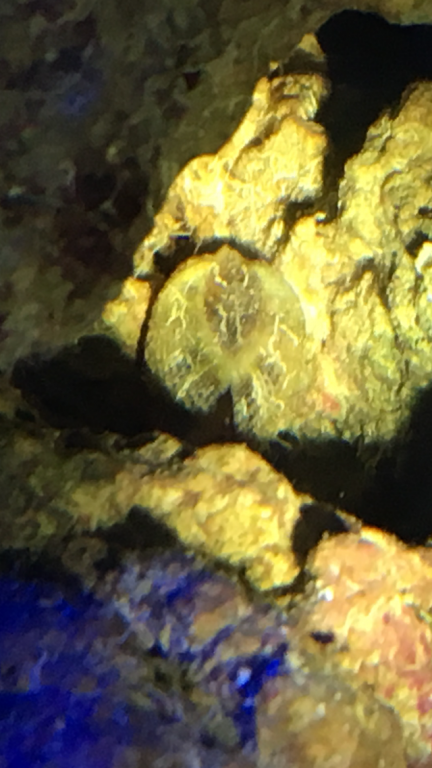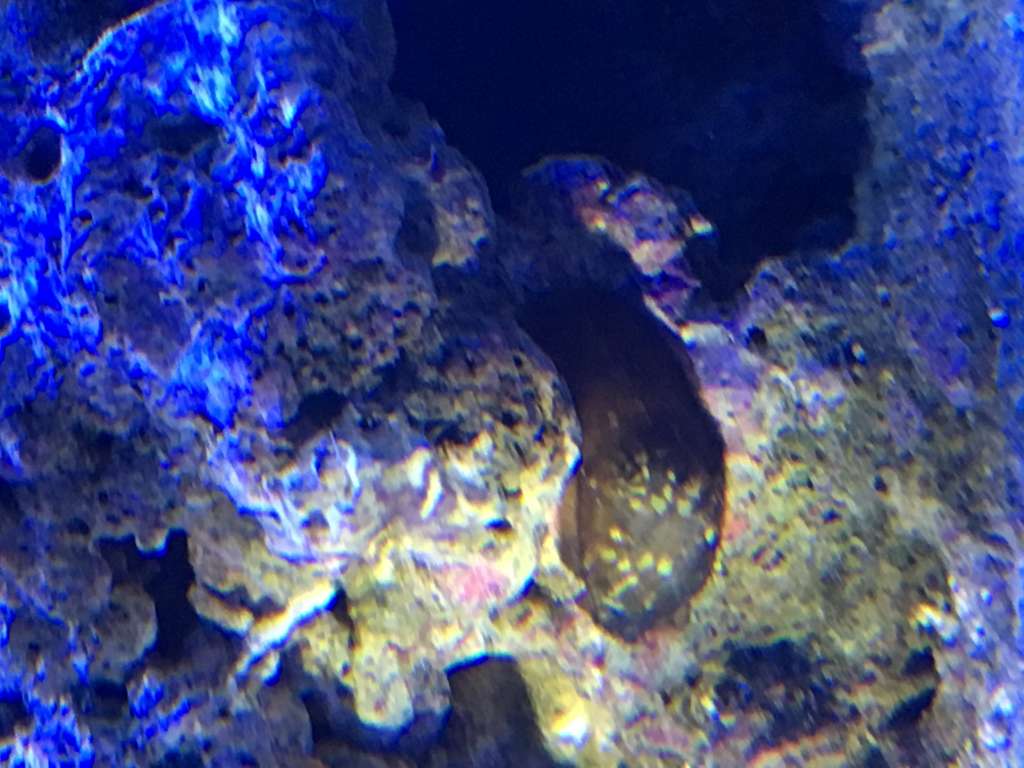 Jeg har googlet lidt, og jeg tror det er sådan en øresnegl .. det var helt vildt - sad og kiggede med lommelygte ind i akvariet og så pludselig var der noget der bevægede sig og så dukkede den lille fyr op