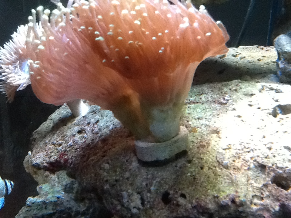 Jeg ville sætte den enten i f.eks en fordybning i sten, så kanten af korallen får kontakt, eller bruge reef-cement til at komme op under den.