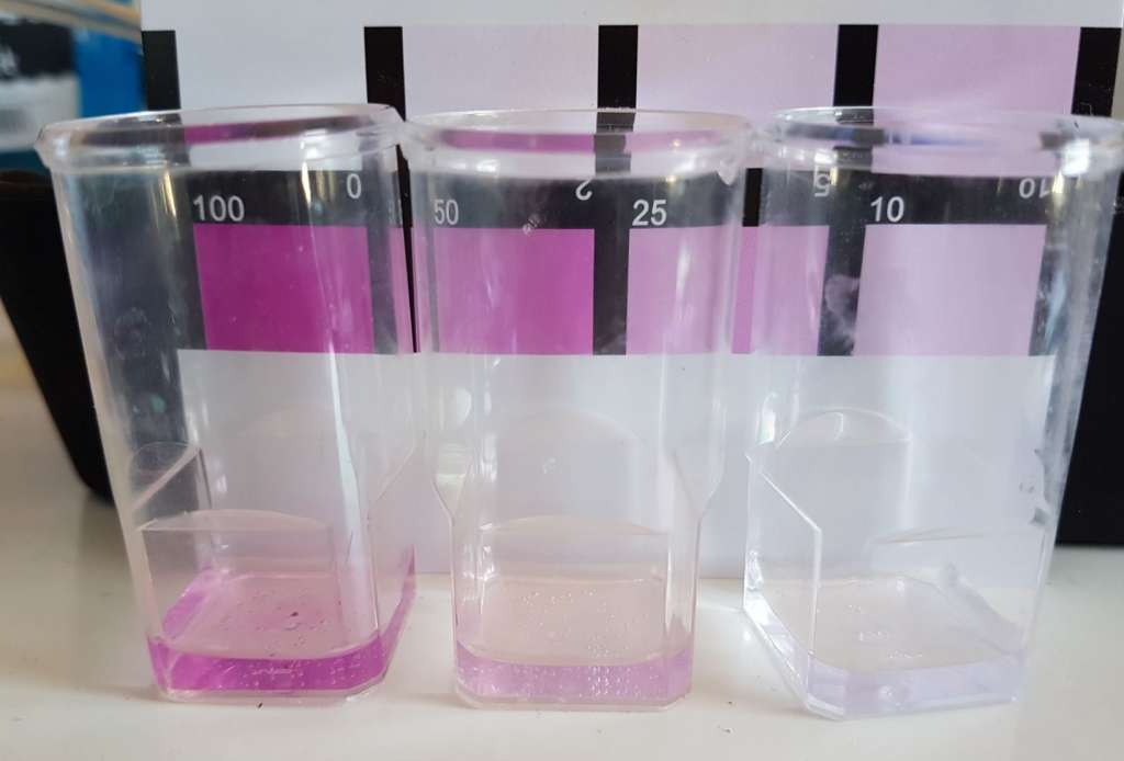 Nitrat = Venstre = baljen, midten = ny blandet saltvand, højre = nyt osmosevand uden salt