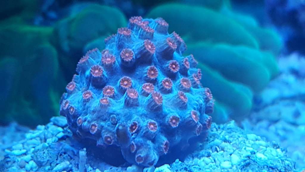 Det er en rigtig fin koral, men den blå farve kan drille.