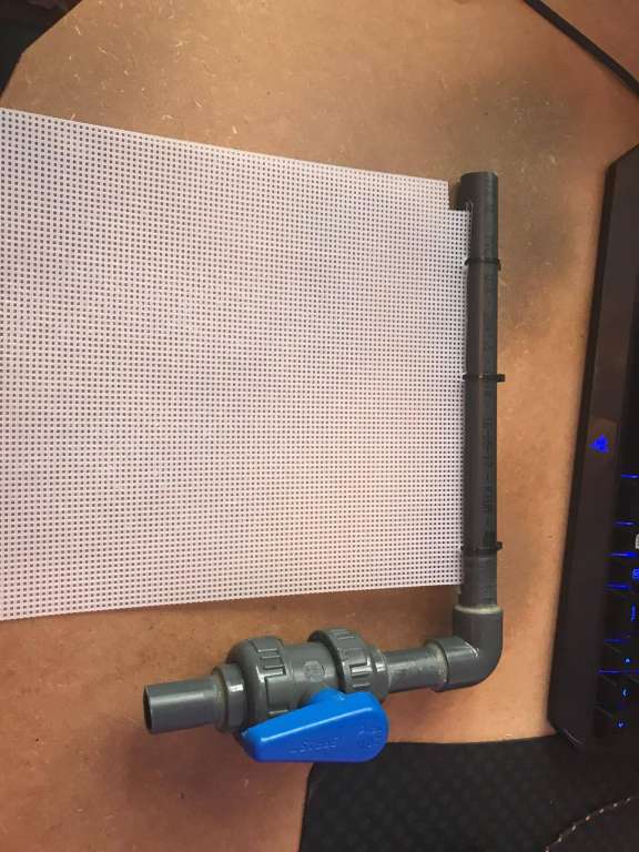 Jeg brugte stift plast mesh som blev gjort godt ru. Scrubberen rørte lige overfladen af vandet for at fjerne splaSk og lyde derfra. Derudover bukkede jeg. Godt klar plastplazd så det hang som en afskærmning for plask, lugt og støj ud i skabet. Denne afdækning fin så ledstrips påsat og mørk folie ud over for ikke at have grow light i heleskBet. Det har ret tydeligt h prop meshetT led’erne var placeret.