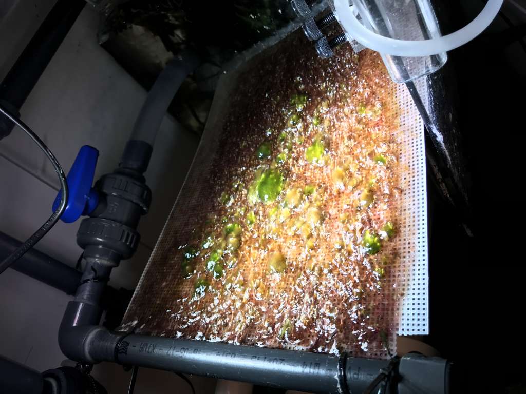 Jeg lavede en scrubber, drevet af overløbs vandet og med en hane på for at regulere flot. Altså vand fra akvarie delt i 2 og så en hane på skrubberen. Scrubberen hang over refugie/kammer med ls i.