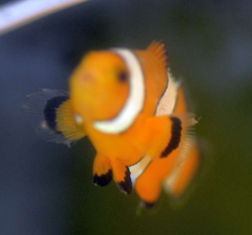 Den har gået i karantæne akvarium de sidste 4 uger, sammen med en anden klovnfisk og en hugo og en tangnål. Der er ingen koraller eller anemoner i akvariet. Den havde ingenting da jeg fik den hjem, det kom efter 2 uger, og den har så haft det siden.