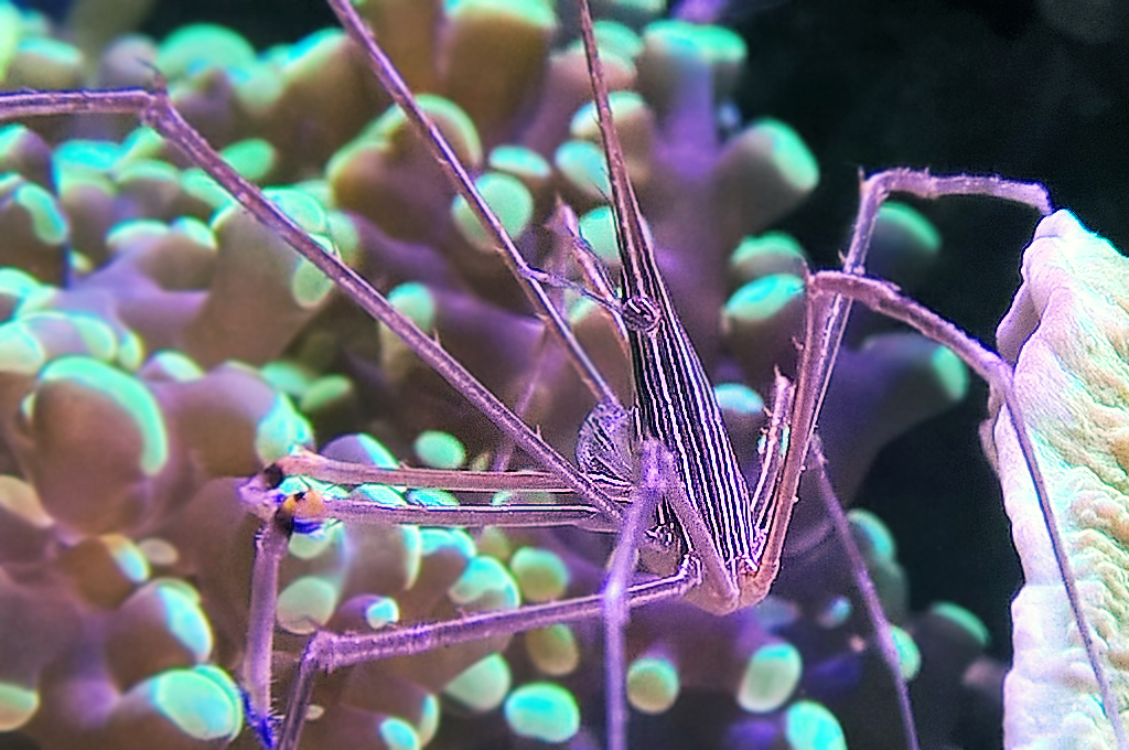 Men her er de "ondeste" fisk bare nogle bicolor anthias, og de er total ligeglade med den. Selv min nysgerrige bispinosus virker uinteresseret. Krabben ligner nu heller ikke foder potentiale.