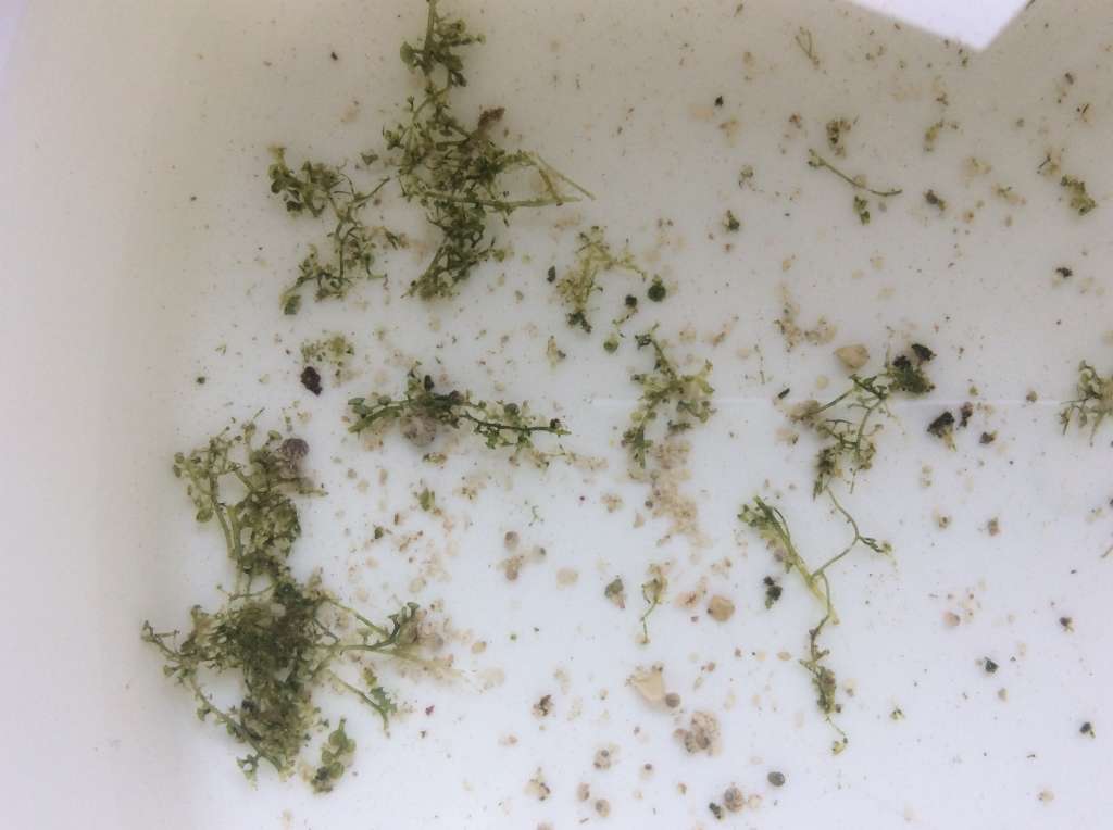 kunne man se, at det er sådan nogle lange stængler med små blade, umiddelbart ser planten ud til at have potentiale til at overtage hele kloden, da den allerede havde spredt sig til andre steder. Jeg har bakset en del med at fjerne så meget som muligt, men kan observere, at der stadig sidder rester tilbage langt inde mellem zoaerne.