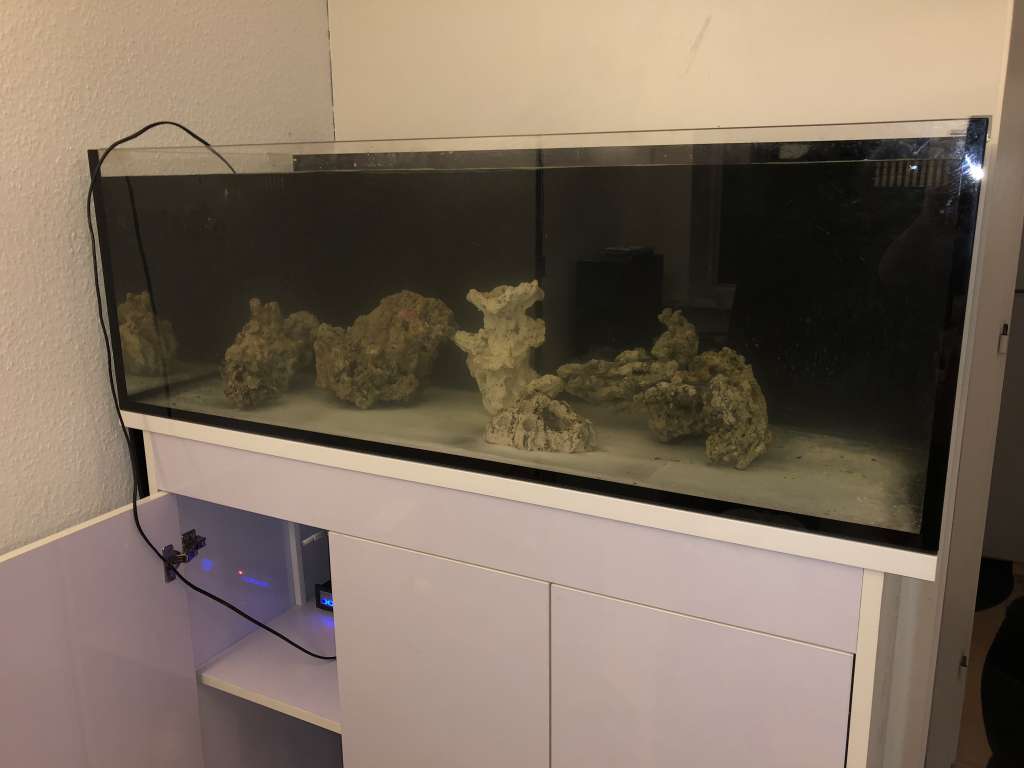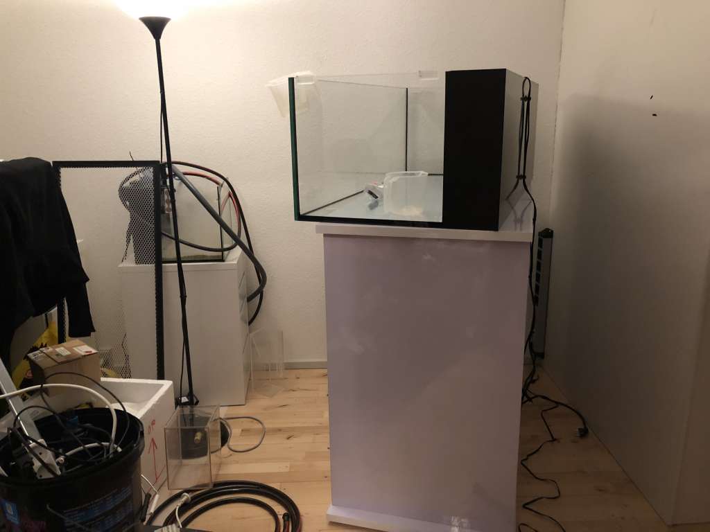 Akvariet blev leveret i dag d. 23/3 ved middagstid og har hen ad eftermiddagen fået samlet bordet hvilket tog en krig da det er højglans, og der er folie på begge sider af alle plader som sidder så man skulle tro det aldrig skulle af. Efter næsten 3 timers banden og svovlen lykkedes det at have alt folie trukket af, og halvanden times tid senere var det møg tunge 92kg bord færdigt