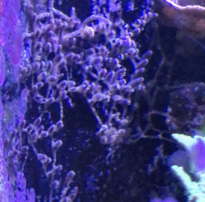 Tilgengæld har jeg en anden lilla blød koral der vokser som ukrudt i sådan noget helt tyndt spindelvæv der ikke er til at få fat på og går i stykker når man endelig får far i en.
