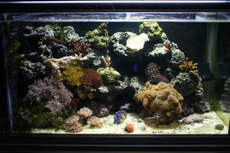 Teknikken står i min signatur, men der er 150w hqi, 2 stk. tunze mini og en maxijet 1000 i overløbet samt lidt nattelys.. Synes selv jeg mangler lidt cirkulation og noget blåt t5 eller lign...
