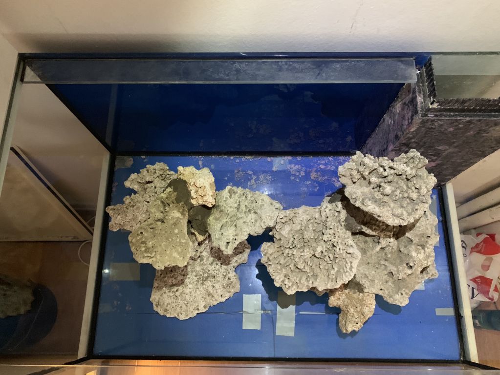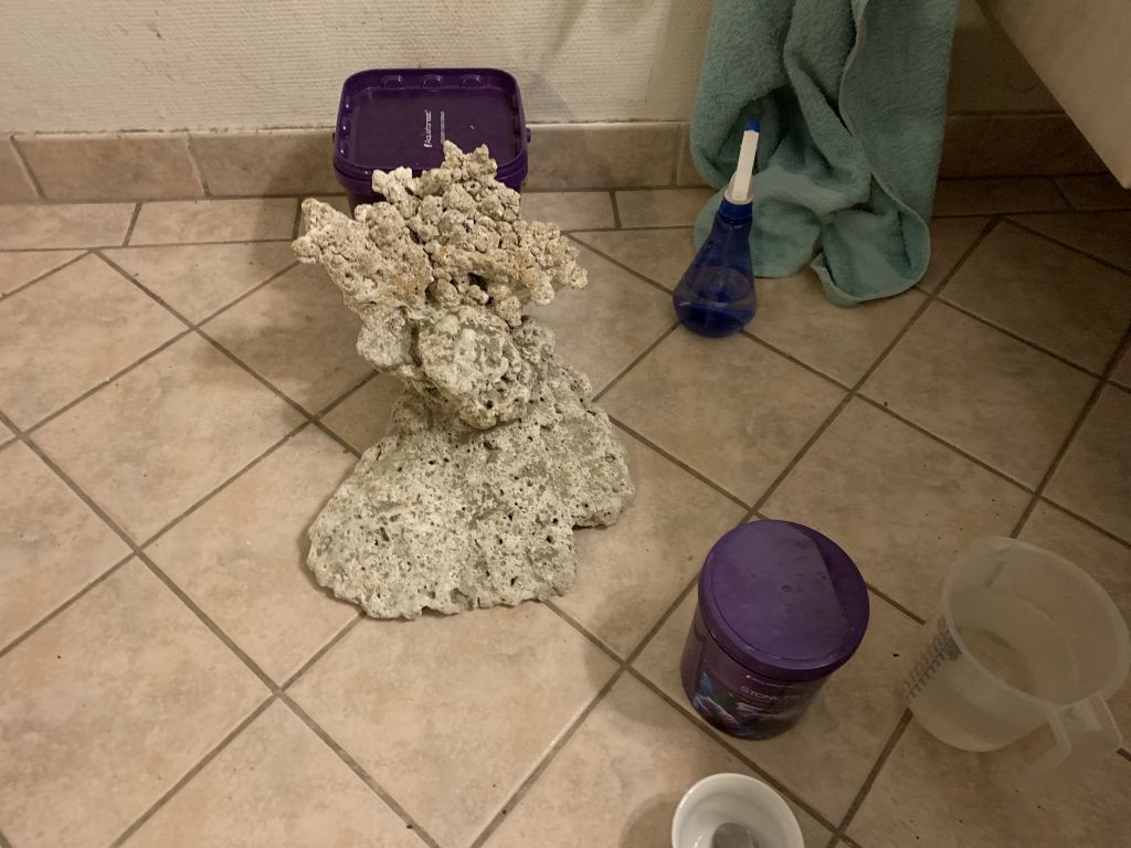 De søjler der er i akvariet der kører, de skal bare ud. men har en del sten i sumpen, der skal over i det nye, til at starte de nye søjler op, og når der så er liv i de nye, ryger de sten ned i den nye sump :-)